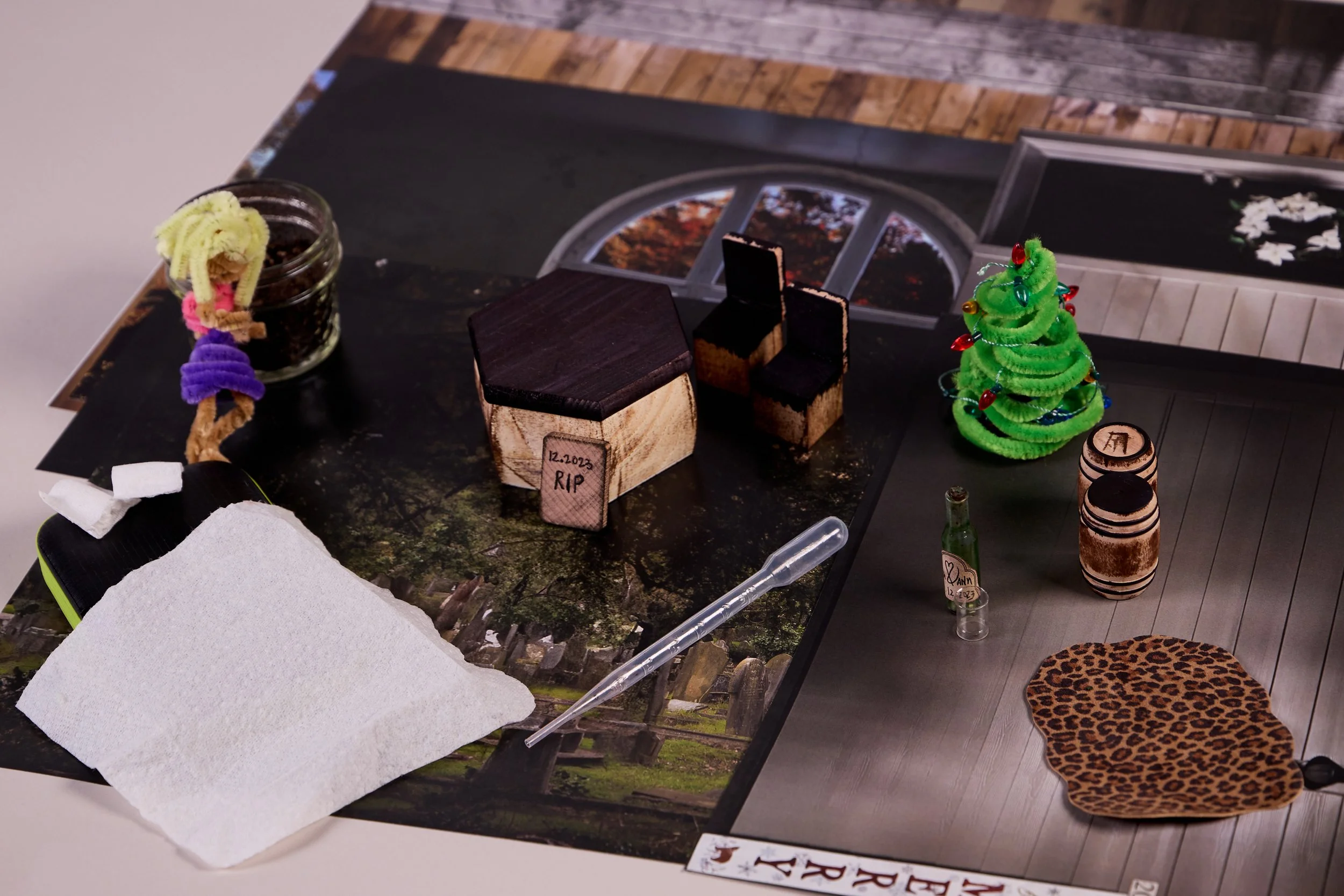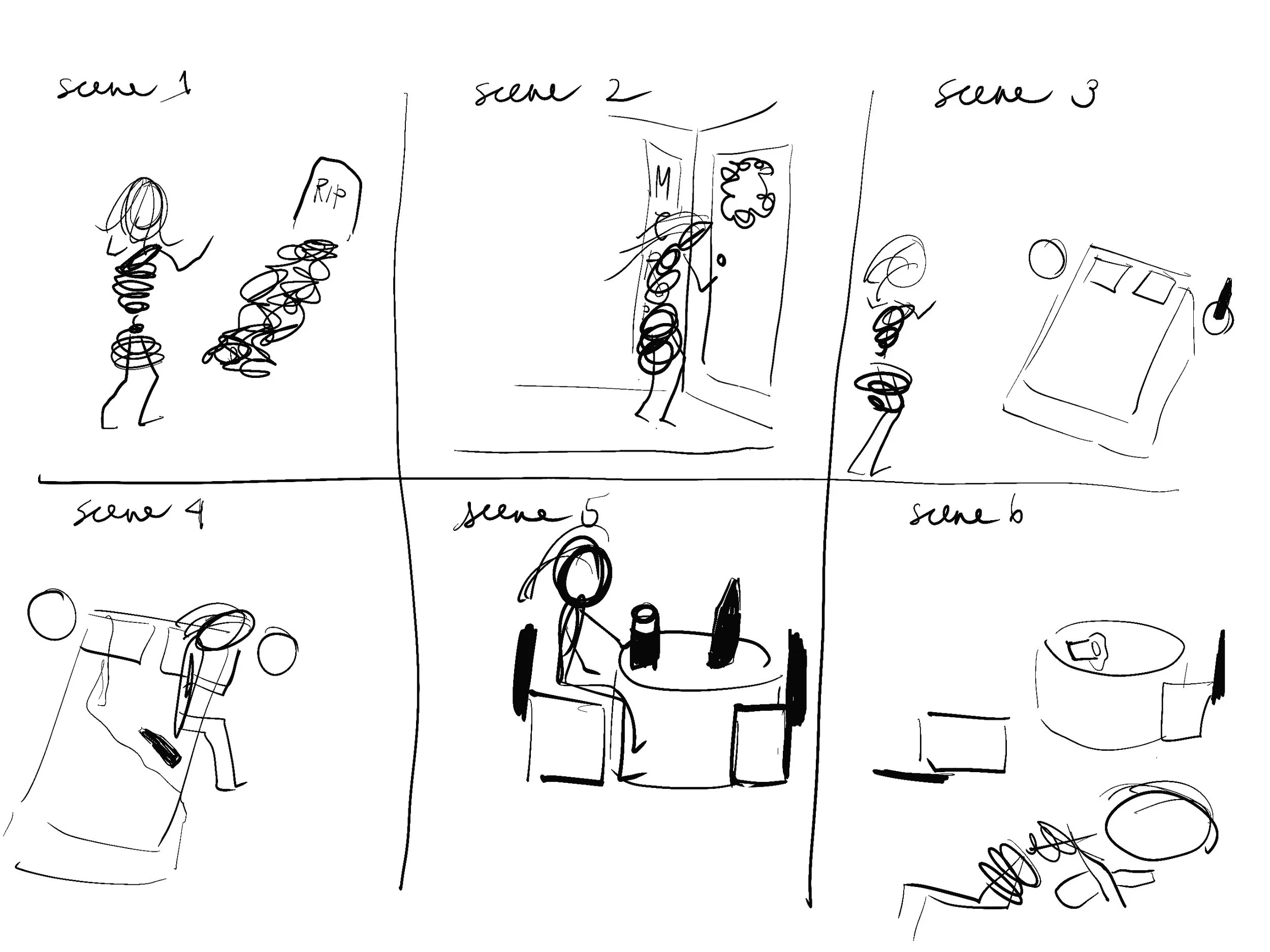 Rough sketching a storyboard, then procuring the images for four scenes and building the props. Photographing the scenes in a studio setting.