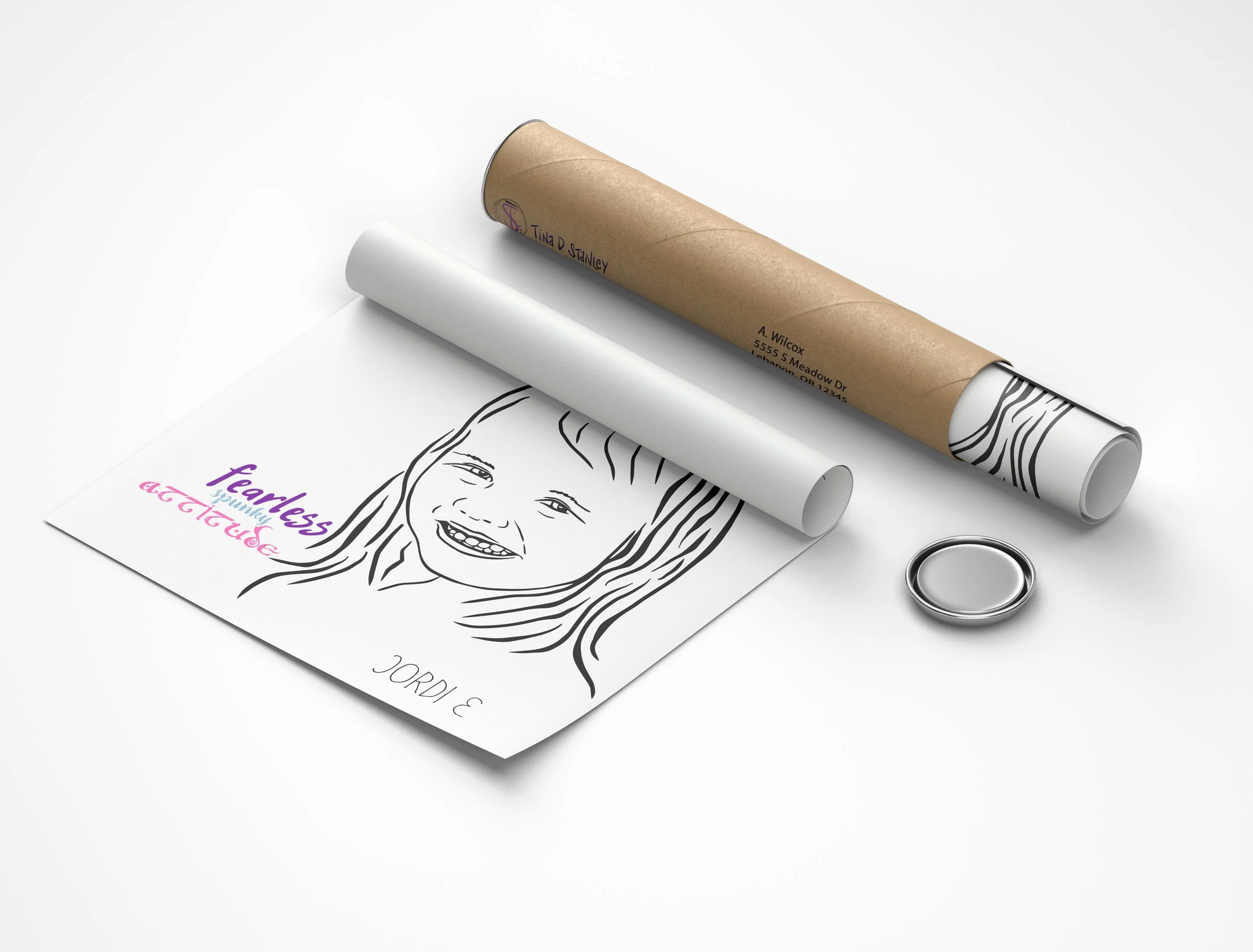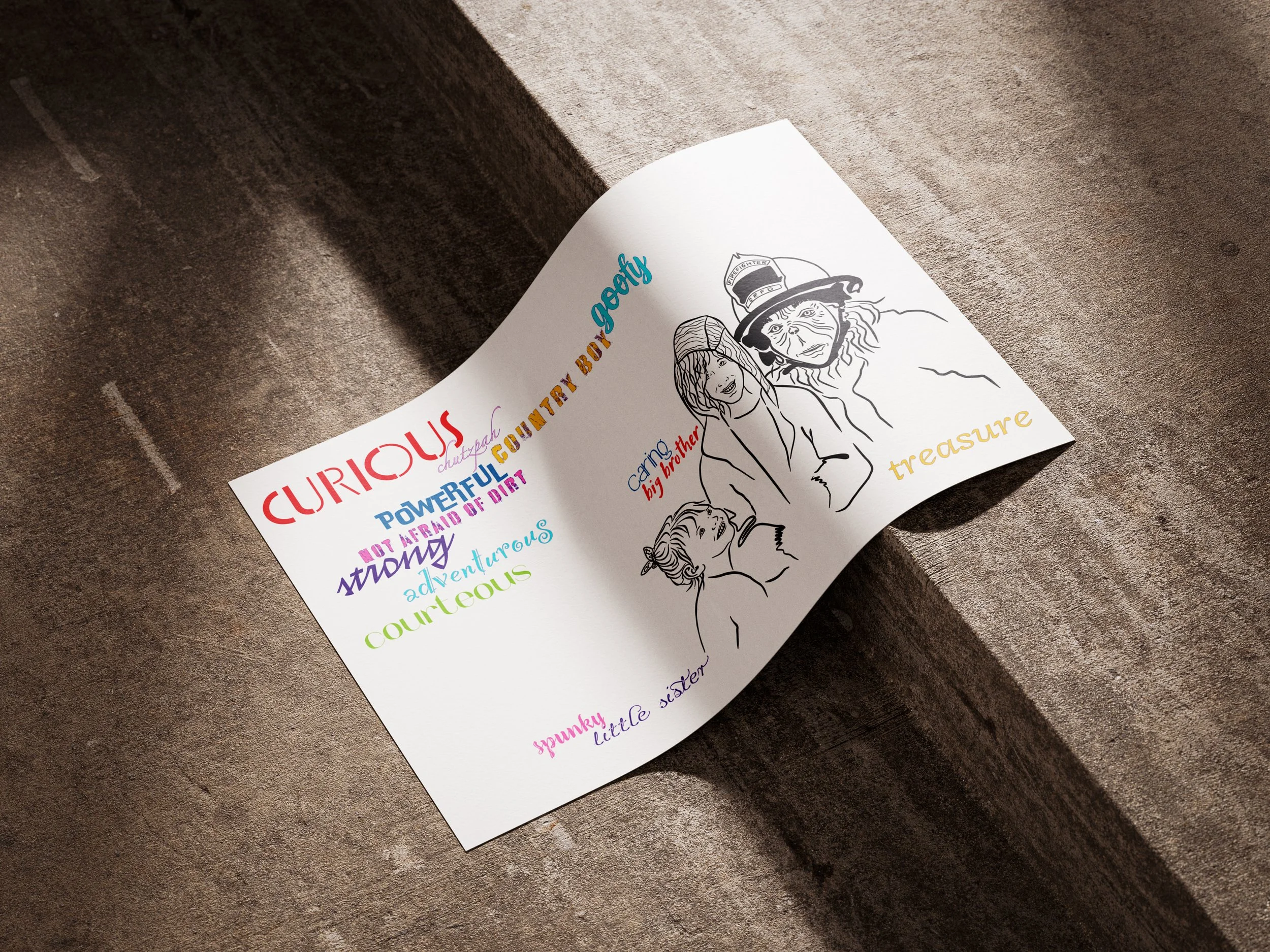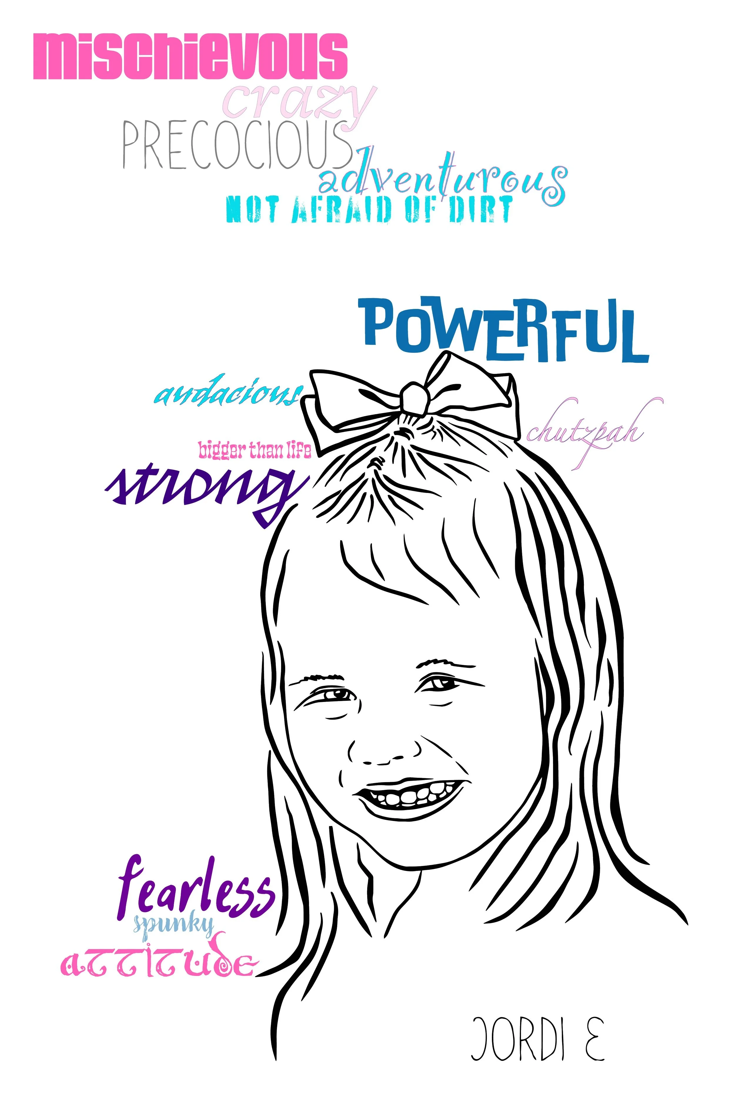 Create an illustration surrounded by descriptive phrases about a person (or group) that capture who they are in that moment.